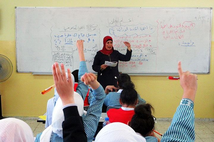 パレスチナは、2013年には初等教育の総就学率95パーセントと高いレベルのアクセスを達成しながらも、国際学力テストでは下位となるなど、教育の質の面で多くの課題が指摘されています。このような中、パレスチナ教育庁は2014年の教育開発戦略計画の中で「生徒中心型」の教育を掲げていますが、それまでパレスチナで実施されてきた知識伝達型の教育とは大きく異なり、教授法の大きな転換が求められています。このような背景から、JICAに対し、理数科教員が効果的な生徒中心型授業を行う技術支援が要請されました。本事業では、理数科教育の強化を通じて、パレスチナの生徒の創造性・批判的思考力が向上することを目指しています。