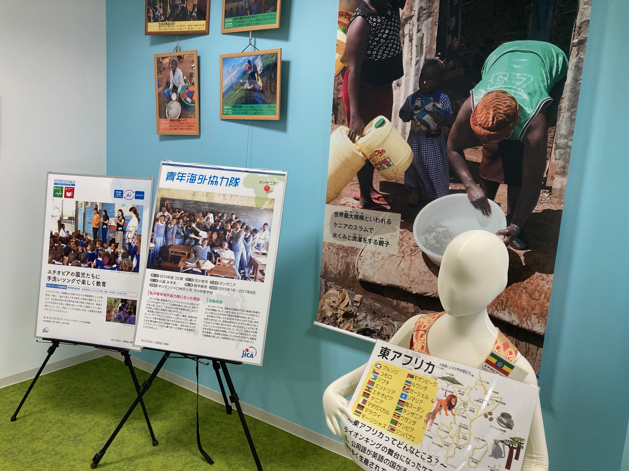 企画展示では、この広大な地域を北、西、東、南、中央の5つに分けてその特徴をわかりやすく紹介しているほか、その地域で活動しているJICA海外協力隊の紹介も行っています。