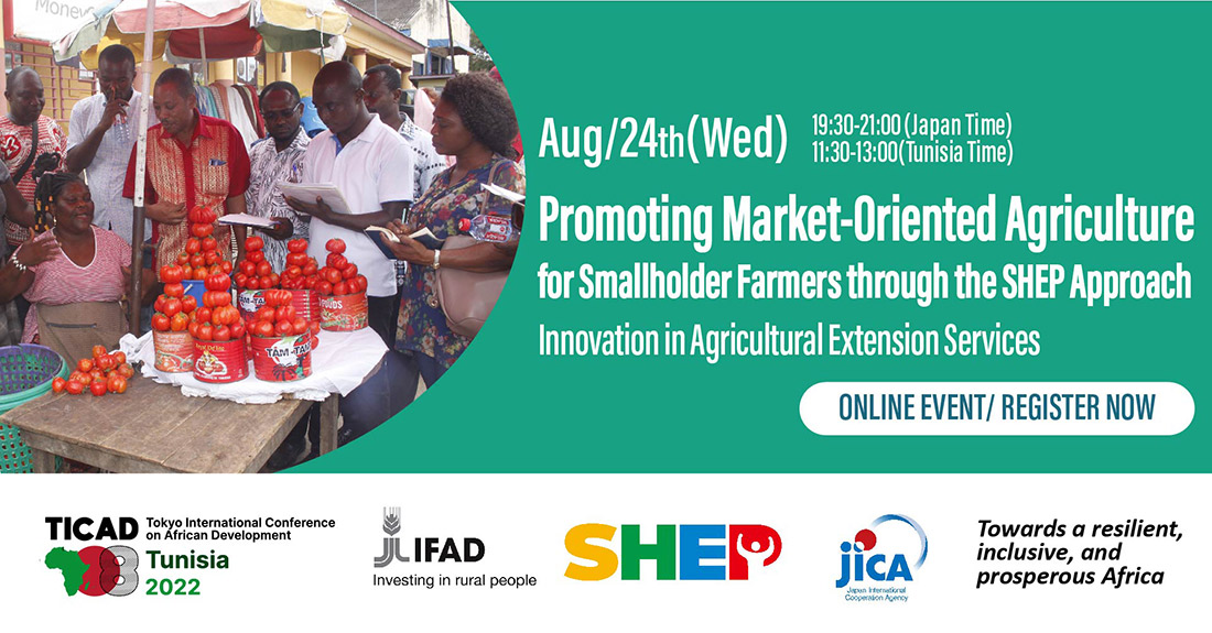 The Smallholder Horticulture Empowerment &Promotion (SHEP) approach is an innovative agricultural extension tool that realizes market-oriented agriculture. Based on psychological evidence, the SHEP approach transforms farmers’ mindset from "grow and sell" to "grow to sell," which leads them to achieve income improvements on their own when their technical and marketing competences are adequately supported. This approach was developed in Kenya in 2006 through cooperation with JICA and has been utilized by international organizations such as IFAD to support smallholder farmers. An impact evaluation study in Kenya shows that the SHEP approach increased horticultural income significantly, that is, by 70%, on average, over a two-year period. Since a joint declaration for achieving "better lives of one million smallholder farmers through the SHEP approach” was made at, the 7th Tokyo International Conference on African Development (TICAD VII) in 2019, collaboration with various organizations including governments, development partners, private companies, and NGOs has been promoted.
