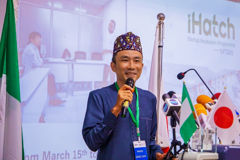 (2022年、ナイジェリアの首都アブジャで開催された、NINJAで選ばれた5名のナイジェリア起業家が投資家にピッチを行うイベント「デモデイ」でスピーチを行う不破さん / 写真:不破直伸)
