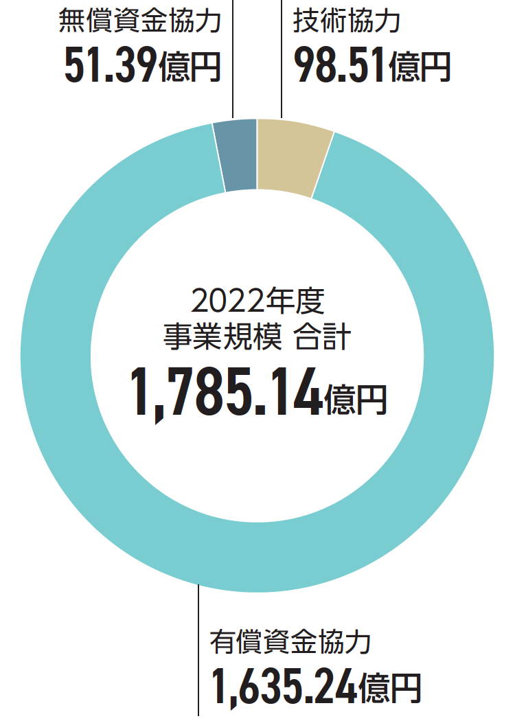 (注)中米・カリブ地域については事業規模1億円以上の国のみ国名を表記。事業規模についてはJICA年次報告書2023年版P.37「地域別事業規模」の注記を参照。なお、四捨五入の関係上、合計が一致しないことがあります。
