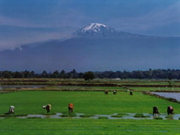 サブサハラ・アフリカでは、これまで主に生産面積の拡大により生産を増やしてきましたが、CARDでは、アフリカの諸条件に適した高収量品種であるネリカ米の普及を含め、適正品種の選定、栽培技術の改善など、単位収量の増大も目指しています。例えば、日本の技術協力、円借款などを行ってきたキリマンジャロ山のふもとにあるタンザニアのローワモシ地区では、1ヘクタール当たり約6トンもの平均収量を達成した実績があります。(全国平均単収は約1.9トン)