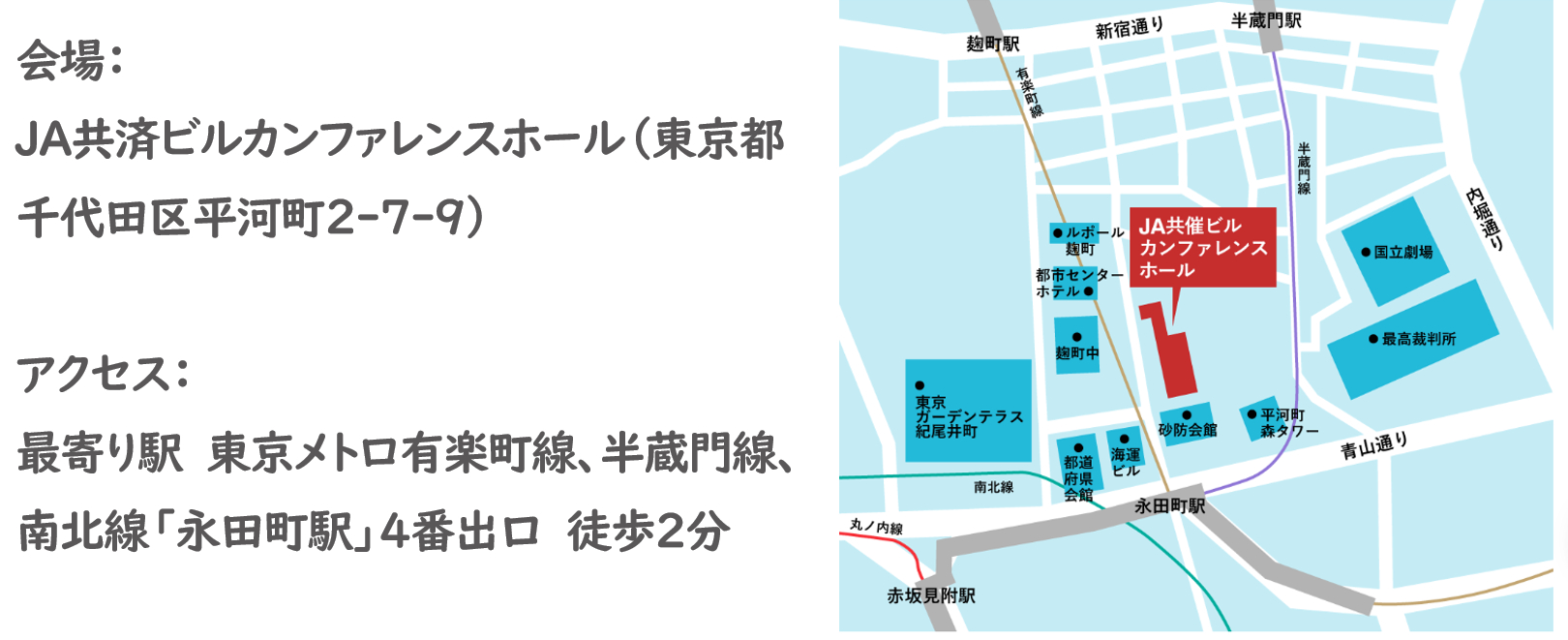 会場:JA共済ビルカンファレンスホール(東京都千代田区平河町2-7-9)