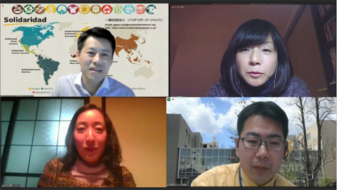 当日は、長野県立大学CSIの須藤氏がモデレーターとなり、開発途上国におけるサステイナブル・カカオ・プラットフォーム(以下、プラットフォーム)会員2名とJICAプラットフォーム担当者1名がオンラインで発表を行いました。