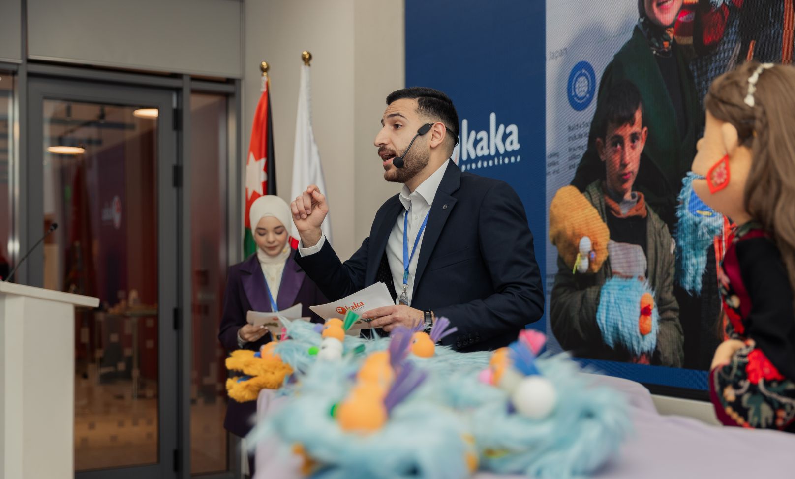 本イベントは、駐ヨルダン日本大使・JICAヨルダン事務所長・MoDEEのExecutive Directorによるオープニングスピーチで始まり、その後ビデオを通してプロジェクト概要が紹介されました。ビデオの中では、シリア難民キャンプでのスタートアップの活動の様子や、JICA海外協力隊が教育系スタートアップを訪問し、テクノロジーを通じた教育活動を学ぶ場面も紹介されました。