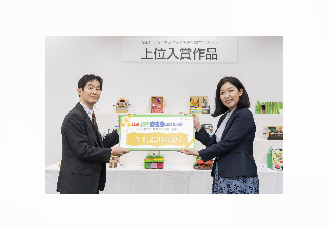 株式会社ゆうちょ銀行は、「第50回ゆうちょアイデア貯金箱コンクール」を通じ、今年も「世界の人びとのためのJICA基金(以下JICA基金)」へ1,226,726円のご寄附をお寄せくださいました。2025年11月に寄附金贈呈式が行われ、JICAが謝辞をお伝えするとともに、ご寄附に対する感謝状をお渡ししました。