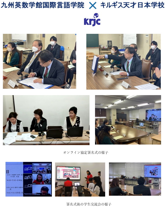 2023年3月16日、九州英数学館国際言語学院とキルギス天才日本学校の間で、オンラインによる協定調印式が行われました。