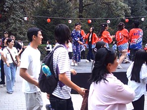・盆踊りの曲に合わせキルギス人と日本人が一緒に踊っている様子