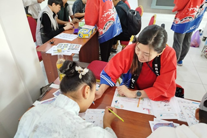 また、浴衣貸し出しに関する問い合わせもあり、文化面での関心も高いことがうかがえました。さらにオシュ市では、日本センター訪問を通じて教授法セミナー開催に向けた意見交換を行ったほか、イベント会場でオシュ州大学やバトケン日本学院の教員と交流が生まれ、出張後も連絡を継続するなど、地域に広がる日本語教育ネットワークの形成が進展しました。
