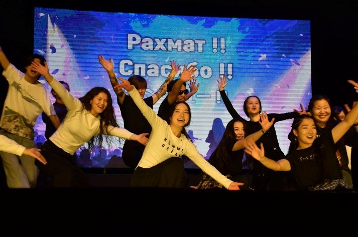 その後は若者文化を象徴する TIKTOK ダンス、アラバエフ・キルギス国立大学付属日本学院の学生による歌やダンスが披露され、現代的なエネルギーが加わりました。