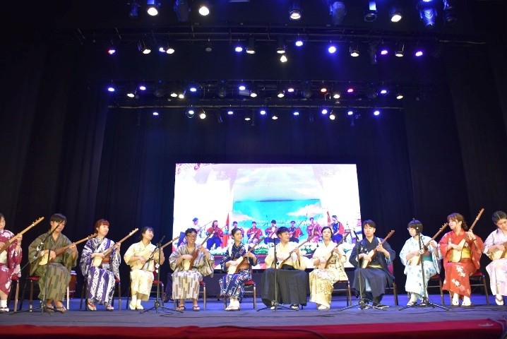 コンサートは、日本の伝統文化を象徴する箏の演奏で幕を開け、華やかな花笠音頭が続き、観客を魅了しました。