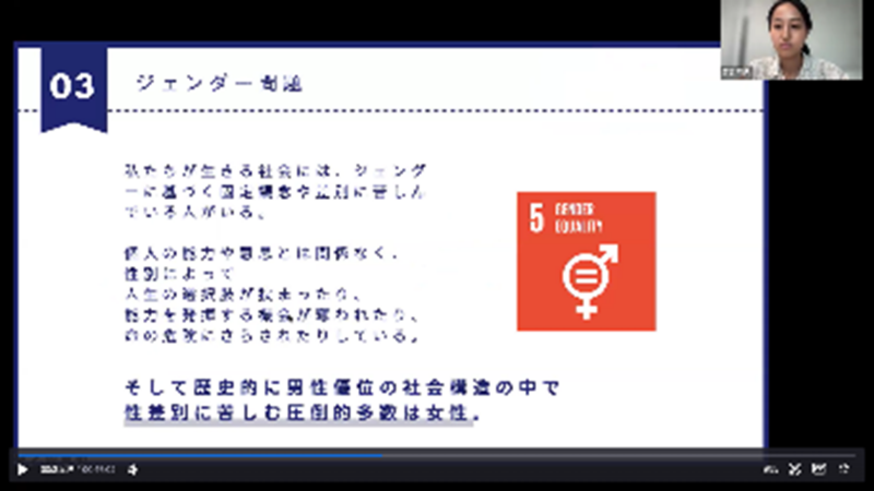- 自分の国以外は興味ないとするのではなく、世界全体でジェンダーなど社会問題を解決するために手を取り合うことが大切だと学んだ。