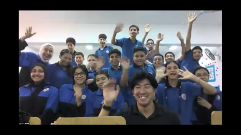 2025年11月5日、青森県の八戸工業大学第二高等学校附属中学校に向けた、JICAオンライン国際協力出前講座を行いました。中学1年生から3年生までの53人が参加し、エジプトで活動中のJICA海外協力隊、逢坂隼平(おおさかしゅんぺい)さんを講師に迎え、JICA海外協力隊の体験談をお話いただきました。逢坂さんは、日本式教育が導入されたエジプト日本学校(EJS:Egypt-Japan School)で、体育隊員として体育の授業や現地の先生方に対する研修も行っています。