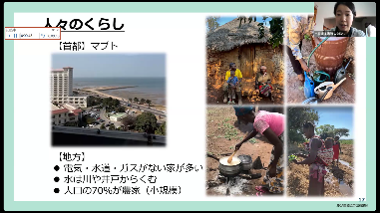 など、1つの課題をみても、様々な問題が複雑に絡み合っているということを伝えてくれました。それらの解決に向けてJICAなどが行っている取り組みも紹介し、モザンビークにおけるSDGsの課題と現状についてとても分かりやすくお話いただきました。