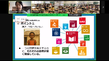モザンビークのアボリジニ小学校の数名が集まってくれて、清須市立春日小学校の皆さんと質問をし合ったりと交流もできました。画面越しながら、遠く離れた国のお友達と交流できたことは両国の子どもたちにとっていい思い出になったと思います。