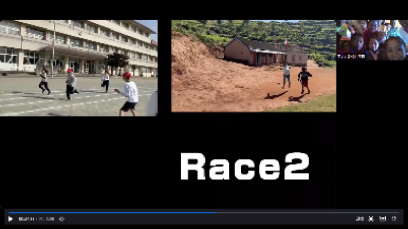 その後は、事前に測定していた50m走の動画をみんなで鑑賞。実際に一緒に走ることはできませんが、アンカズベ小の子どもたちにとっては、タイムを測定するという経験も初めてだったので、心に残る体験になったそうです。