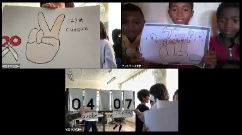 また、城田小の児童からは、「フランス語で挨拶ができて、マダガスカルのみんなが拍手をしてくれてうれしかった」「マダガスカルの先生も子どもたちも日本語を上手にしゃべれていてすごいなと思った」「マダガスカルの子が私の名前を呼んでくれてうれしかった」などの感想がありました。城田小の先生からは、この交流後の子どもたちの変化について、授業への姿勢も積極的になり、人前で発表することに対しても自信をつけたようだとご報告いただきました。