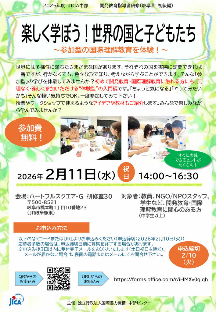 【対象者】教員、学生、NGO/NPOスタッフなど国際理解教育・開発教育に関心のある方