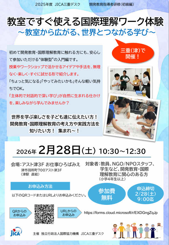 【三重開催】\参加者募集/教室ですぐ使える国際理解ワーク体験~教室から広がる、世界とつながる学び~