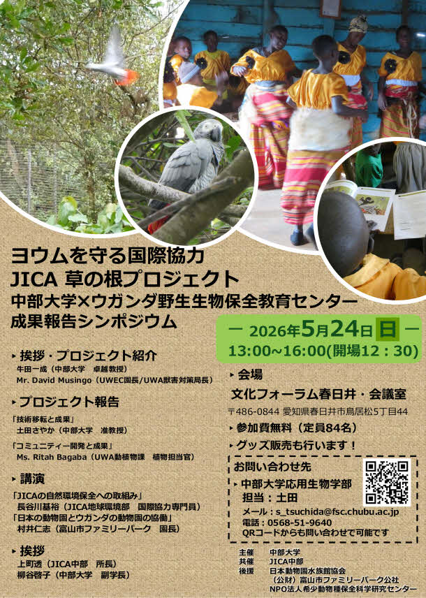 ヨウムを守る国際協力 JICA草の根プロジェクト 中部大学×ウガンダ野生生物保全教育センター成果報告シンポジウム