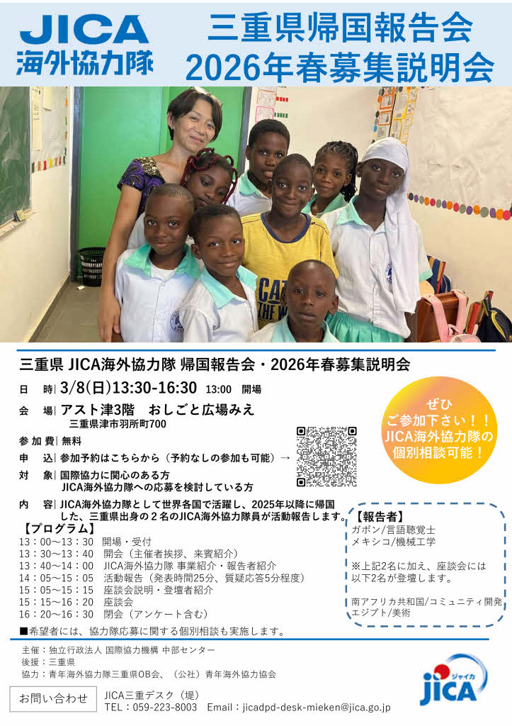 JICA海外協力隊2026年春募集説明会兼帰国報告会 in みえ県民交流センター
