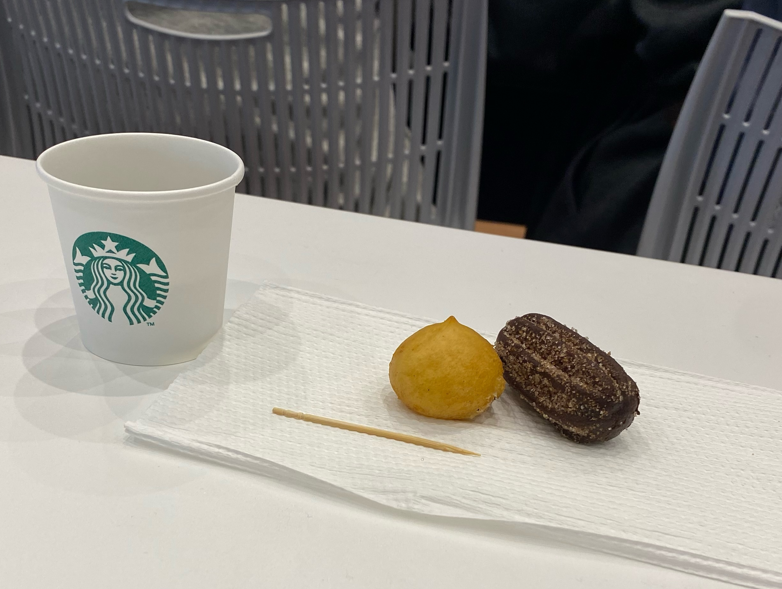 イベントでは最初に、会場である小牧市中央図書館に店舗があるスターバックスさんにご協力をいただき、ブラジルコーヒーのテイスティングやおいしいコーヒーの淹れ方を教えていただきました。参加者はチュロスやコシーニャなどブラジルのお菓子とともに、おいしいコーヒーを楽しみました。