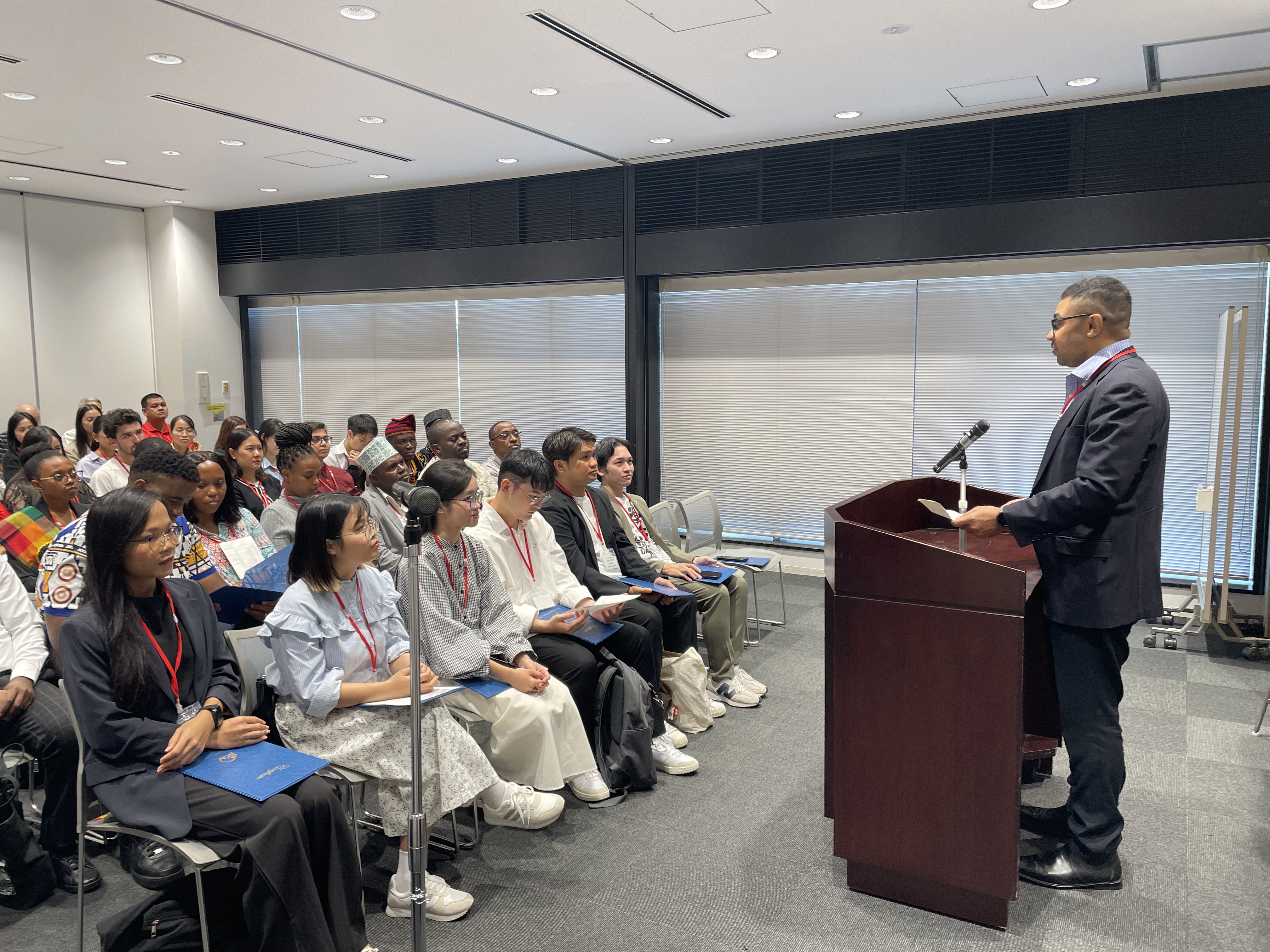 同日、9月に新たに来日したJICA留学生を対象としたオリエンテーションも開催されました。16か国から18名の新規JICA留学生に加え、16か国から34名の先輩留学生が参加し、計52名が一堂に会する盛会となりました。