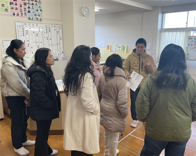 続いて訪れたのは、廃校を活用した交流拠点「マキノハラボ」。代表の浅野拳史氏から、日本の人口減少や廃校問題について説明を受け、地域課題への理解を深めました。また、日本語初期支援教室「いっぽ」の取り組みを動画で視聴し、外国人児童への教育支援の重要性を学びました。
