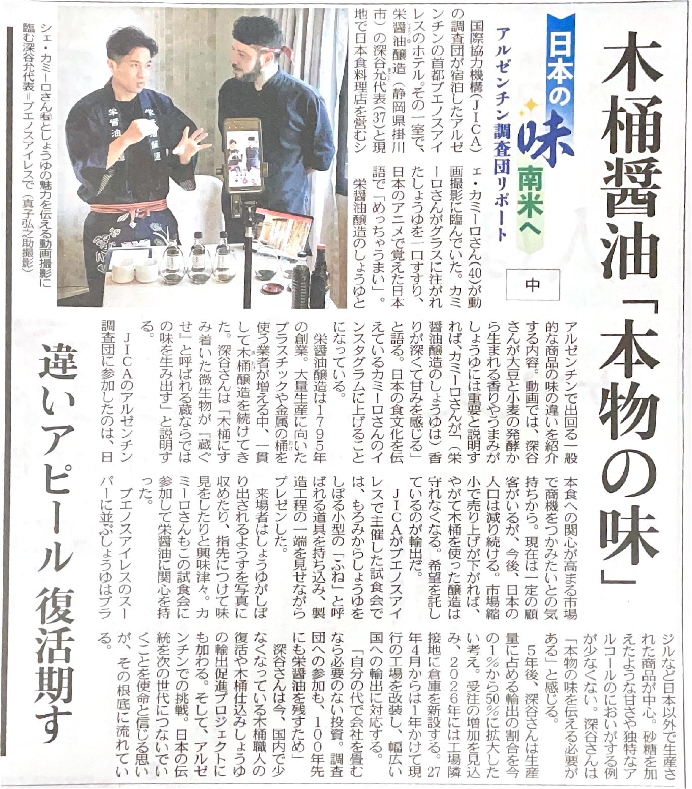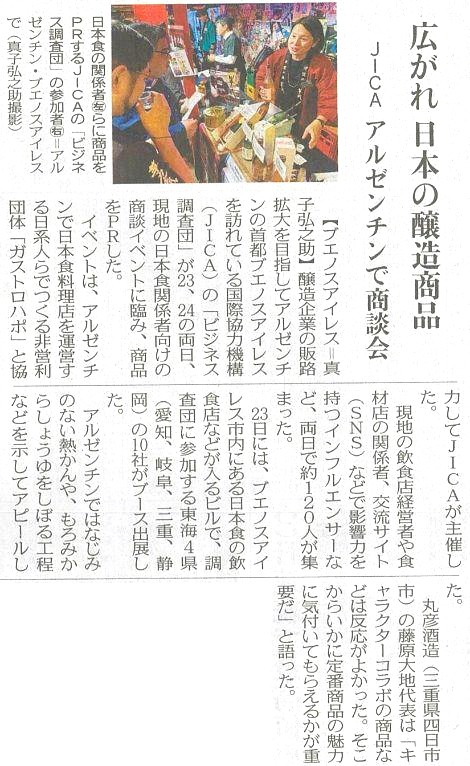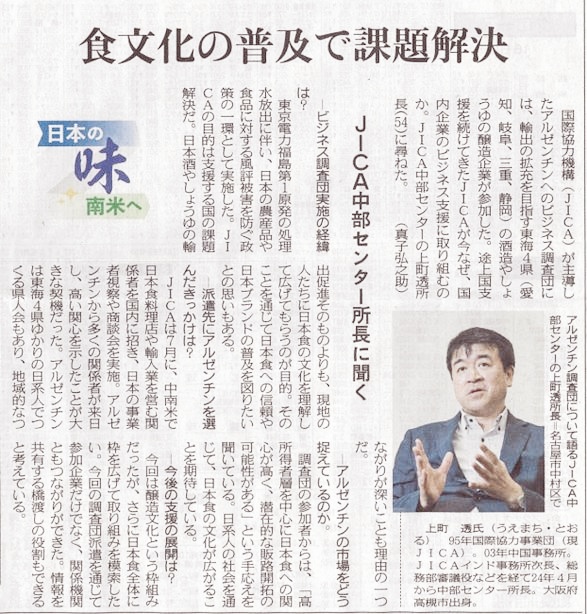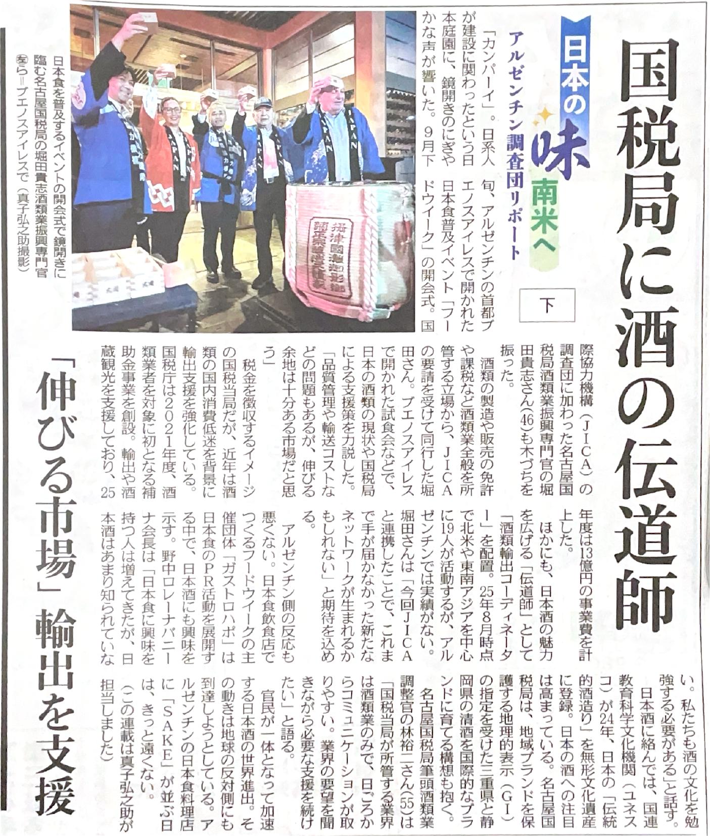 中部地域の醸造企業を中心とした「アルゼンチンビジネス調査団」の取り組みが、中日新聞に2025年9月から12月にかけて、合計6回掲載されました。記事では、現地での活動や今後の展望について詳しく紹介されています。