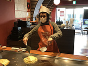 今回は、宮島訪問前にお好み焼き作りを体験しました。ほとんどの研修員がお好み焼きを作るのも食べるのも初体験です。お好み焼きが広島のソウルフードであることや、どんな材料を使うのかを事前に学び、体験場所に到着しました。この体験施設では、イスラム教徒やベジタリアンでも食べられる食材も用意されています。手を洗い、帽子とエプロンを付けた瞬間にテンションが上がります!ヘラを両手に大撮影大会が始まりました。インストラクターのお手本に倣って焼いていきますが、人によって大きさも形も様々です。具材を積み上げたお好み焼きをひっくり返す一番の難関も無事に突破し、みんな上手に焼くことができました。