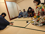 2つ目の「Culture Team」は、浴衣の着付けをしてもらい、茶道と百人一首を体験しました。「浴衣がとっても気に入りました!ぜひ購入したい。」とモーリシャスのディヤさん。自身の民族衣装との違いも感じられて嬉しそうな様子が印象的でした。