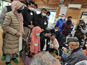 しめ飾りが完成した後は、写真撮影会です。顔より大きな立派なしめ飾りを作ることが出来て大満足の研修員たちは、講師と一緒に写真を撮ったり、お互いの作品を褒め合ったり、和気あいあいと過ごしました。そして交流タイムでは、持参した世界地図や各国のお正月の過ごし方の写真を見ながら、自国のお正月について話す様子も見られました。「バングラデシュでは、カラフルなお面と民族衣装で踊るなんて賑やかですね。日本との違いが印象に残りました。」と地域の方から感想が寄せられました。新年のお祝いの仕方は違えど、どの国も家族と楽しく過ごす行事であることが分かります。