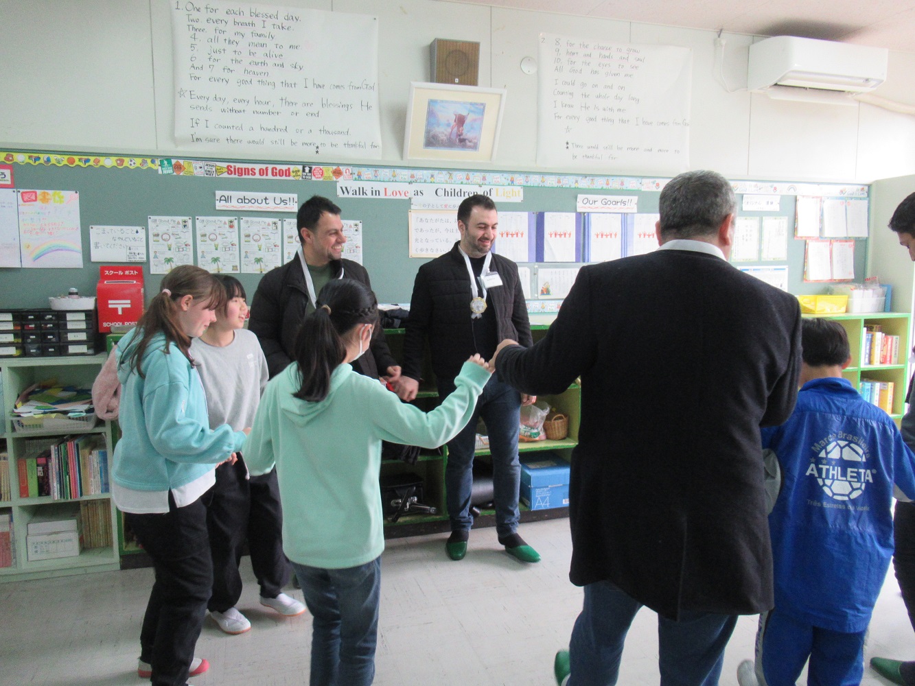 2024年2月2日(金)、三原市大和町にある広島三育学院大和小学校を訪問するために、JICAイラク廃棄物処理コースの研修員6名が朝早くジャンボタクシーに乗り込みました。広島三育学院は小学校から高校までのキリスト教の学校で、小学校は全校生徒5名です。研修員たちにとって、キリスト教の学校を訪れるのは初めての経験。どんな交流が待ってるのか、期待に胸を膨らませて出かけました。