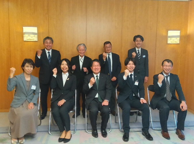 岡山県庁の皆さまとガッツポーズ