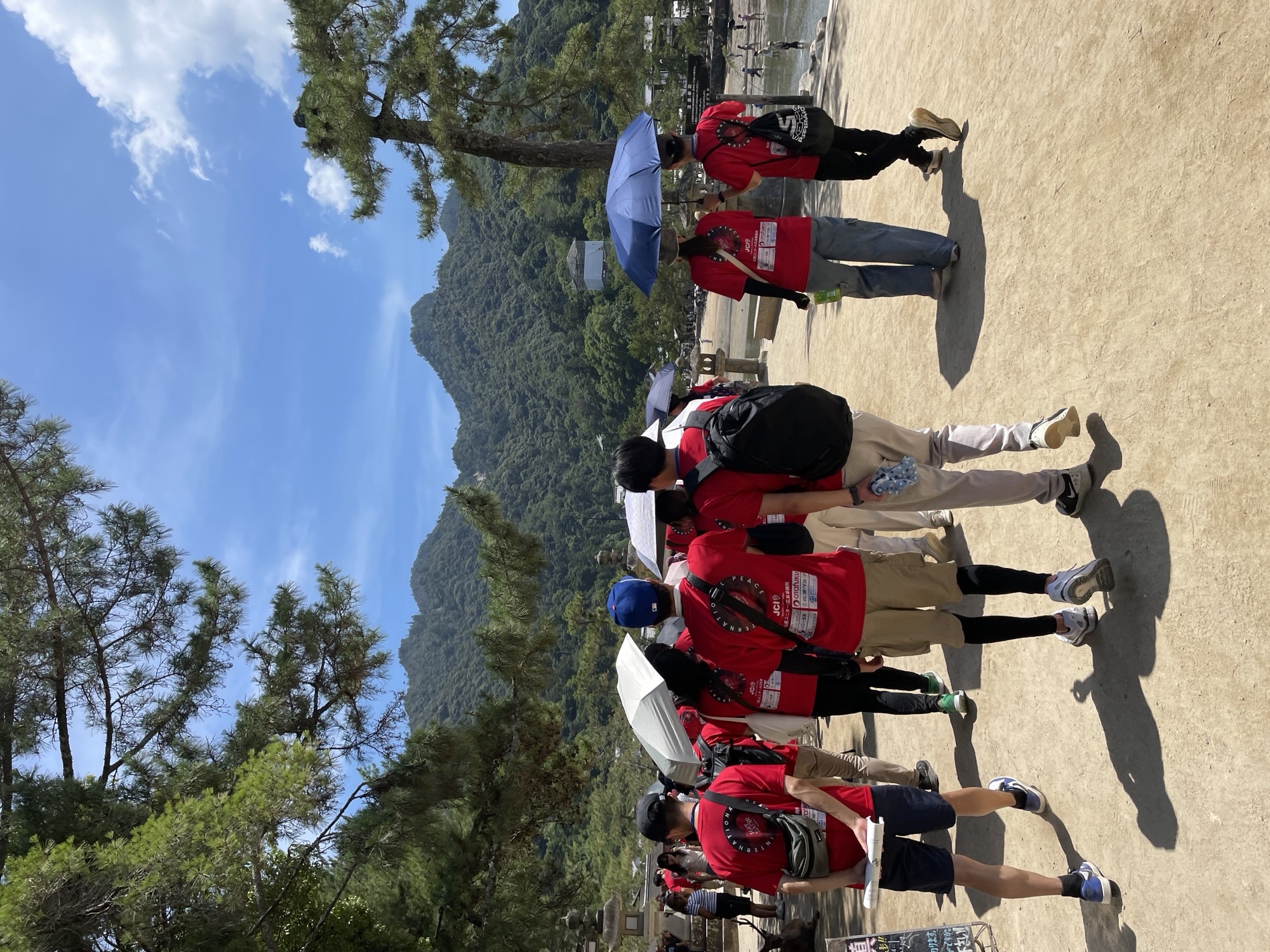 本プログラムは、被爆80年を迎える広島の地で、国境を越えた青年たちが「相互理解から生まれる他者への思いやりの心」を持つことにより、一人ひとりが灯す平和の灯が、自国へ戻った後に、この広島の地で学んだことをベースに平和活動を進めていくことで、平和の大きな炎となり世界が平和になることを願いつつ、実施されました。7月には、平和記念資料館を訪れ、被爆体験者からの話を聞き、猛暑のなか、弥山に残る「消えずの火」を運ぶという、厳しい環境の中で1つの目的に向かい、国籍の異なる者同士が協力をする体験をしました。また対面プログラム以外では、各自が平和への行動計画を立て、実施、報告を行うオフラインプログラムもありました。各プログラムでは、いくつかのグループに分かれて、日本人高校生ボランティアがファシリテーターとなり、グループの中心となってメンバーをまとめていました。
