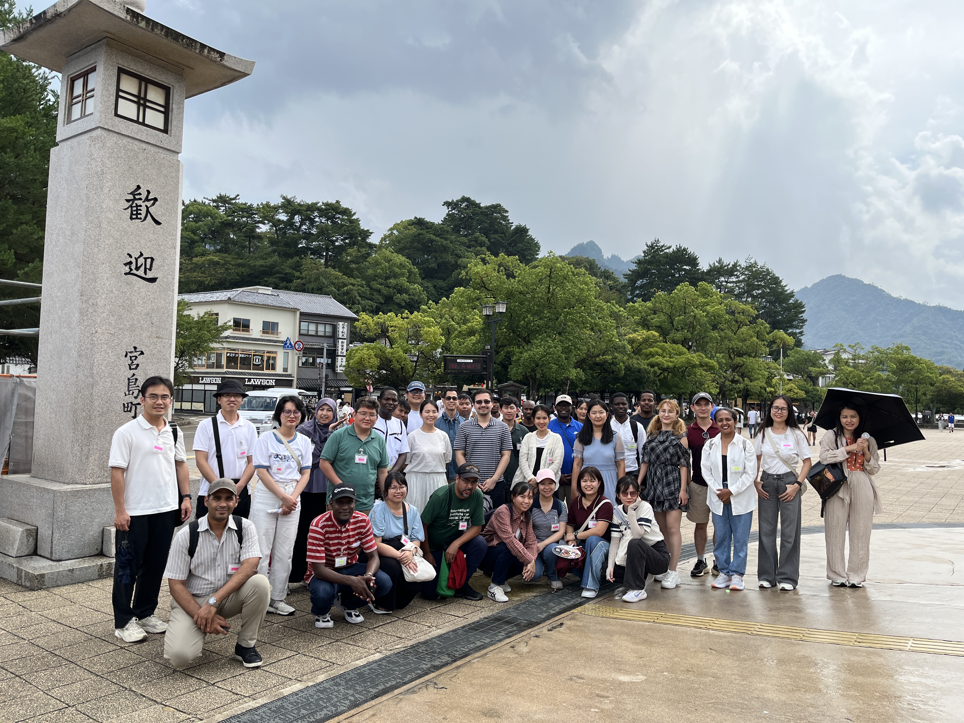 原爆や戦争の悲惨さ、平和の尊さを訴える原爆ドーム、多くの人々が信仰したという古式ゆかしい厳島神社、広島県を代表する2つの世界遺産を訪れて、研修員に満足していただけたようです。とても暑い日でしたが、特に体調を崩すこともなく、無事帰途につきました。