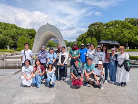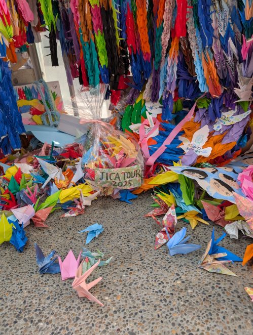 毎年実施している全国のJICA研修員対象のツアーですが、今年はタイトルに「被爆80周年」を明示し、参加者には事前に折り鶴の作り方の動画を送り、各自で折り鶴を作ってきてもらいました。