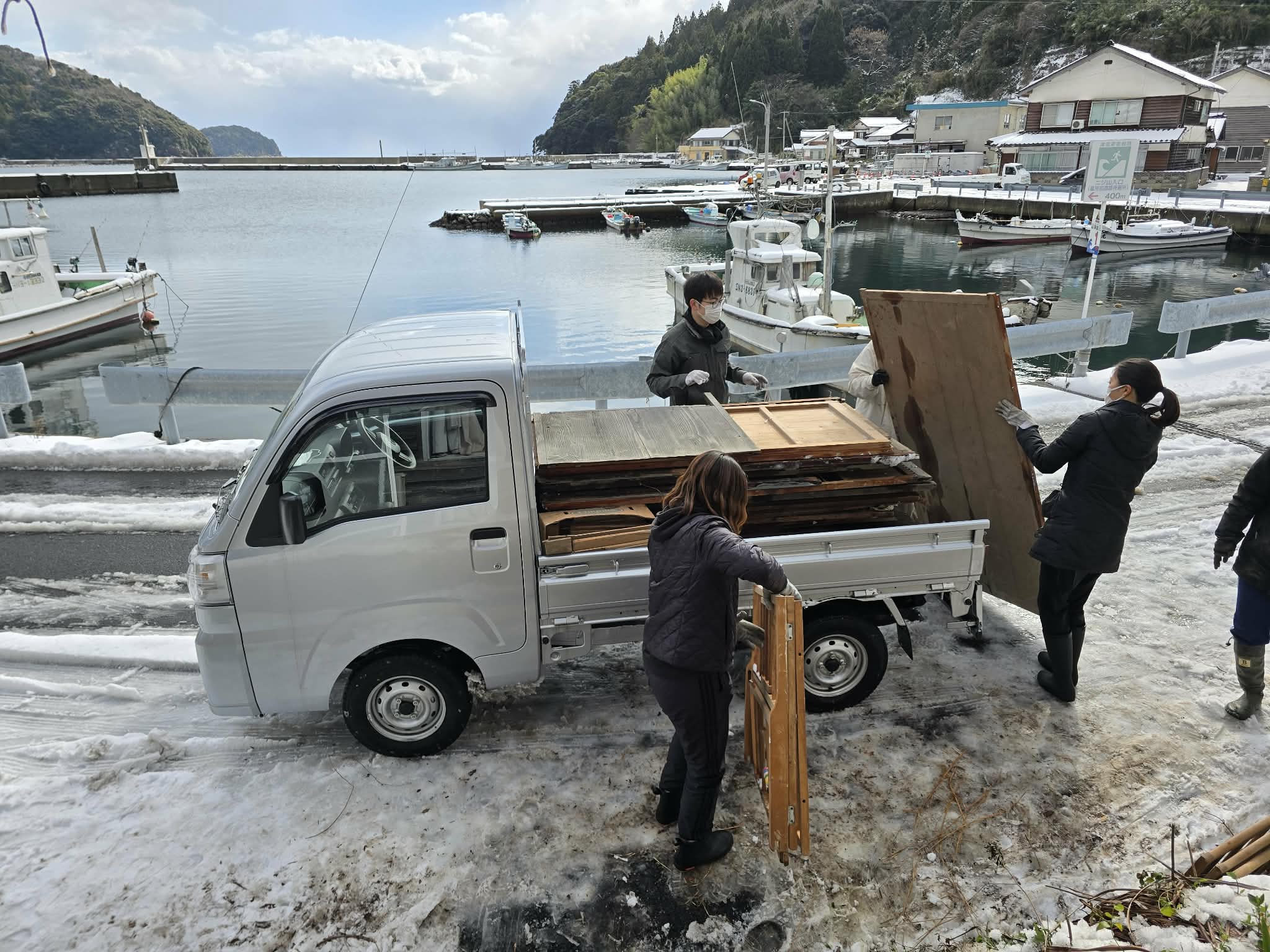 また、今回の活動で出た廃材は、単に廃棄されるわけではありません。これらの廃材は塩づくりを手掛けている株式会社海士が引き取り、海水を蒸発させるためのかまどの薪として再利用されます。この日、軽トラック3台分もの廃材が運び出されました。空き家から出た廃材が、島の特産品を作るための新たな役割を得た資源へと生まれ変わり、海士町らしい循環の一端を担う活動となりました。
