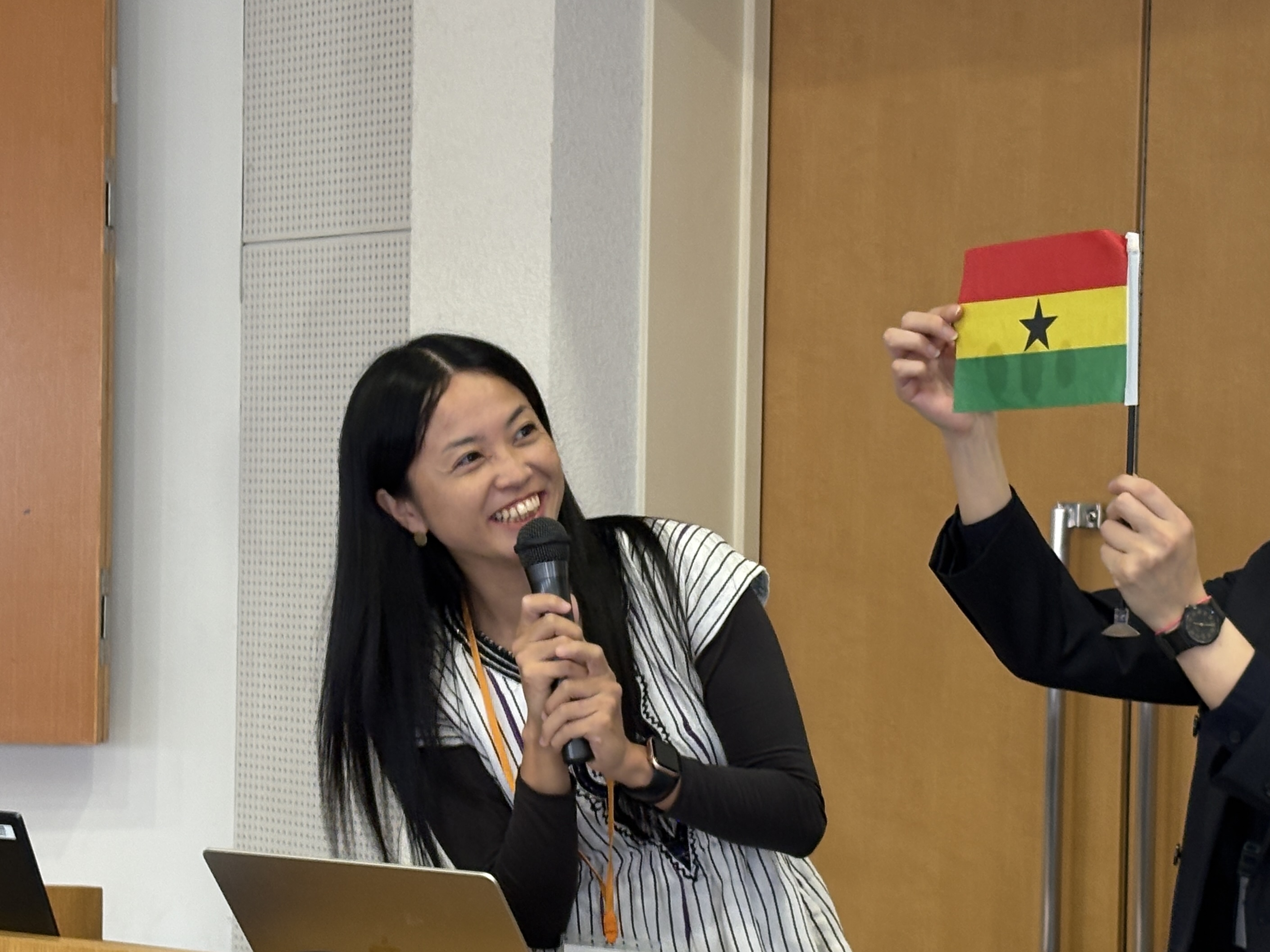 田川さんはガーナのNGOで障害当事者と家族のエンパワメントを支援する団体で活動していました。「2年間を通して、生活も活動もうまくいかなくて、悩んだことや大変なこともたくさんありましたが、悩んだり落ち込んだりしていると誰かが声をかけてくれました。水や電気、物は日本より不足しているかもしれませんが、ガーナ人の大きな心にたくさん助けられ、大変さも含めて貴重な経験ができました。JICA海外協力隊としてガーナに派遣されて良かったと思います。現地では言えない思いなどもあるかもしれませんし、何気ない家族とのメッセージで元気になることもあります。」と優しいメッセージを伝えてくれました。