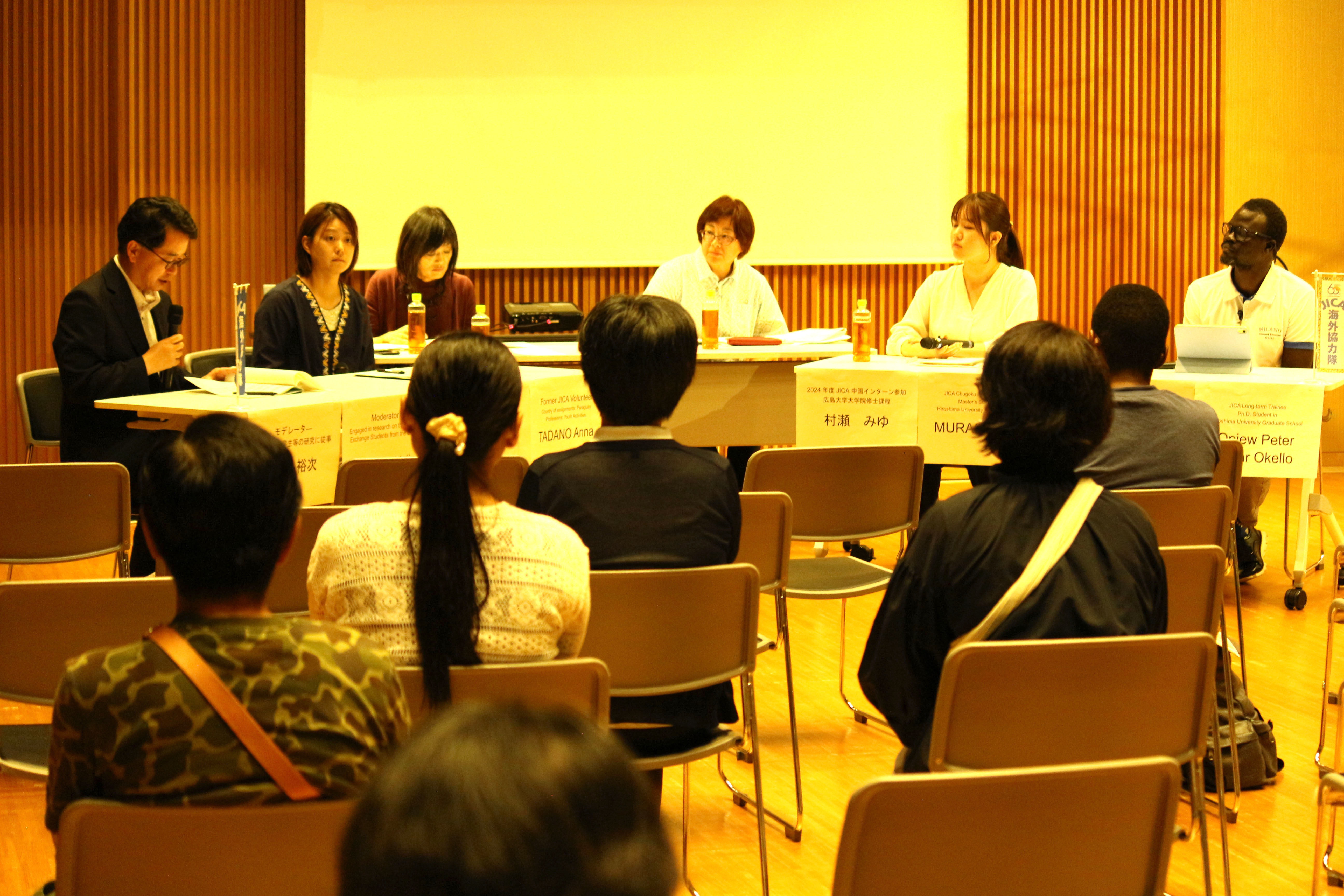 映画上映後のトークセッションでは、モデレーターの平野裕二さんの進行で、只野杏奈さん(元JICA海外協力隊員)、村瀬みゆさん(JICA中国元インターン生、現大学院生)、Peter Okelloさん(南スーダン出身のJICA留学生)の3名が登壇しました。それぞれの経験や立場から、平和や記憶の継承に関する考えが共有されました。