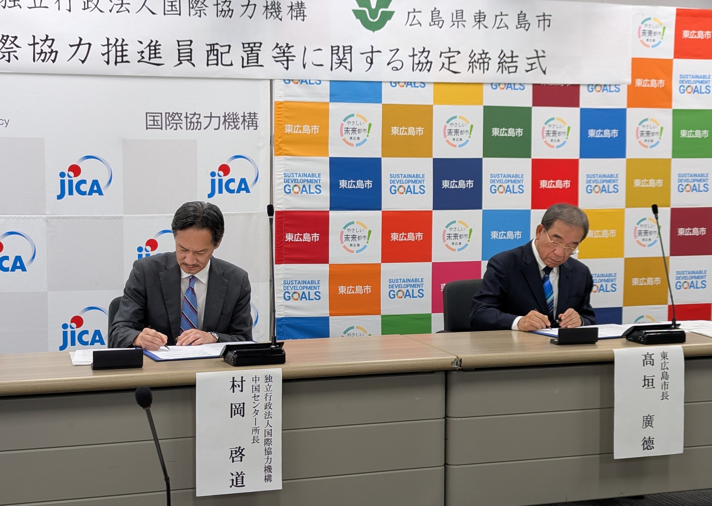 2025年11月6日(木)、JICA中国は東広島市と国際協力推進員の配置に関する協定を締結しました。