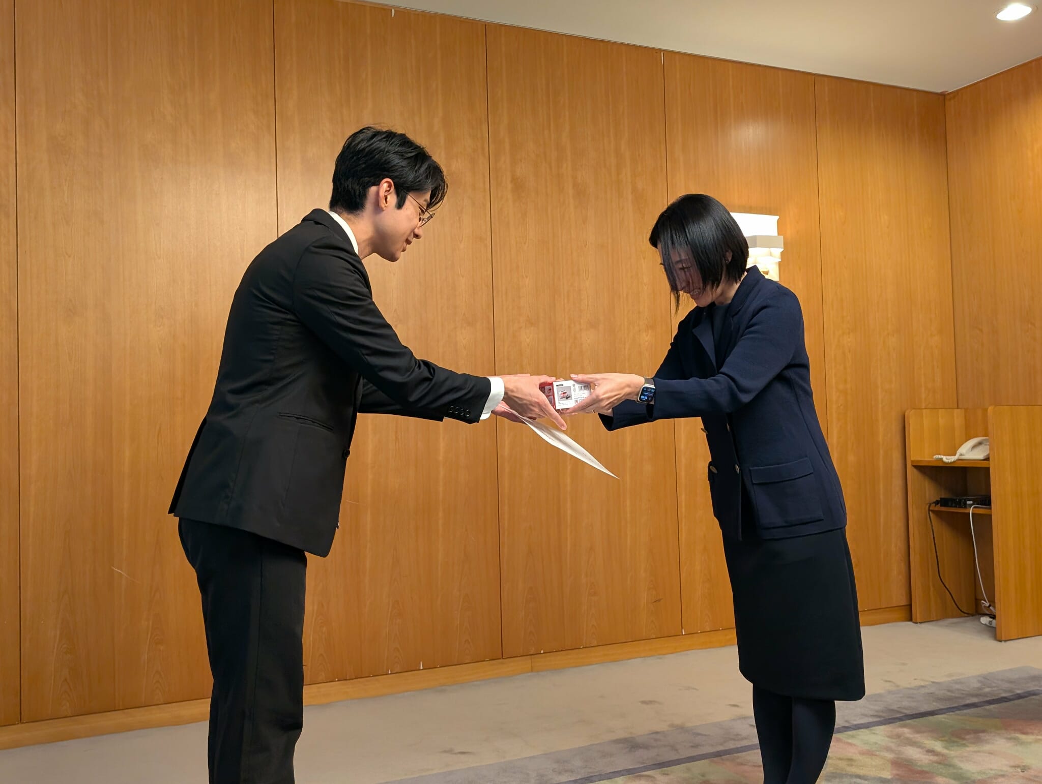 2025年11月26日、2025年度2次隊として派遣されるJICA海外協力隊員4名が岡山県庁を訪問し、出発の報告を行いました。