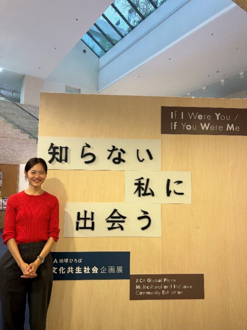 地球ひろばで開催している多文化共生企画展入り口にて=東京都新宿区市谷で、地球ひろば推進課インターン・江藤心晴撮影