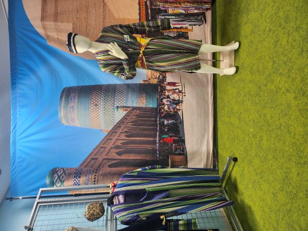 今回の展示の注目はウズベキスタン。日本語教師として派遣されていた沢井隊員の活動や懐かしの風景を集めました。日本語検定を受ける生徒へお守りを一つずつ手作りで渡し、日本語だけでなく文化や心も伝えられる経験となったそうです。そんなお守り作りを体験できるコーナーや、ウズベキスタンの大きな写真の前で衣装を着て記念撮影できるコーナーも。この機会にぜひお越しください!