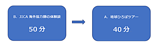 時間配分の例:JICA海外協力隊の体験談を50分、地球ひろばツアーを40分
