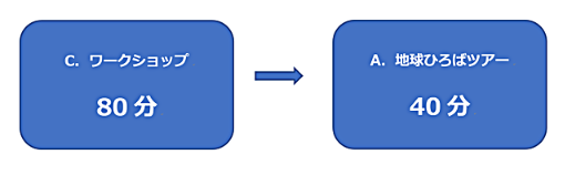 時間配分の例:ワークショップを80分、地球ひろばツアーを40分