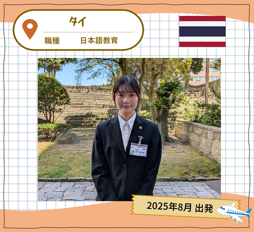 現地の方々と沢山コミュニケーションをとって現地の文化に触れていきたいです。反対に、福井県や日本の文化を沢山伝えて、日本に興味を持ってもらえたら嬉しいです。福井県とタイの架け橋となる存在になれるよう頑張ります!