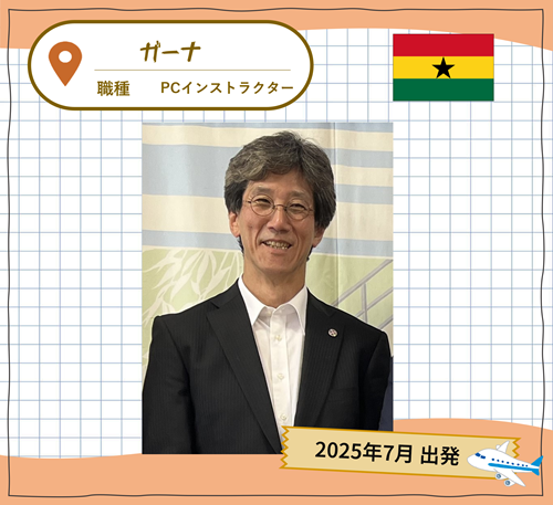 首都アクラ近郊にある現業公務員研修機関のIT部門でICT研修カリキュラム改善や、サイバーセキュリティ対策に取り組む予定ですが、まずは動かないコンピューターの修理から着手するかもしれません。現地の同僚と一体となって取り組んでいければと思います。