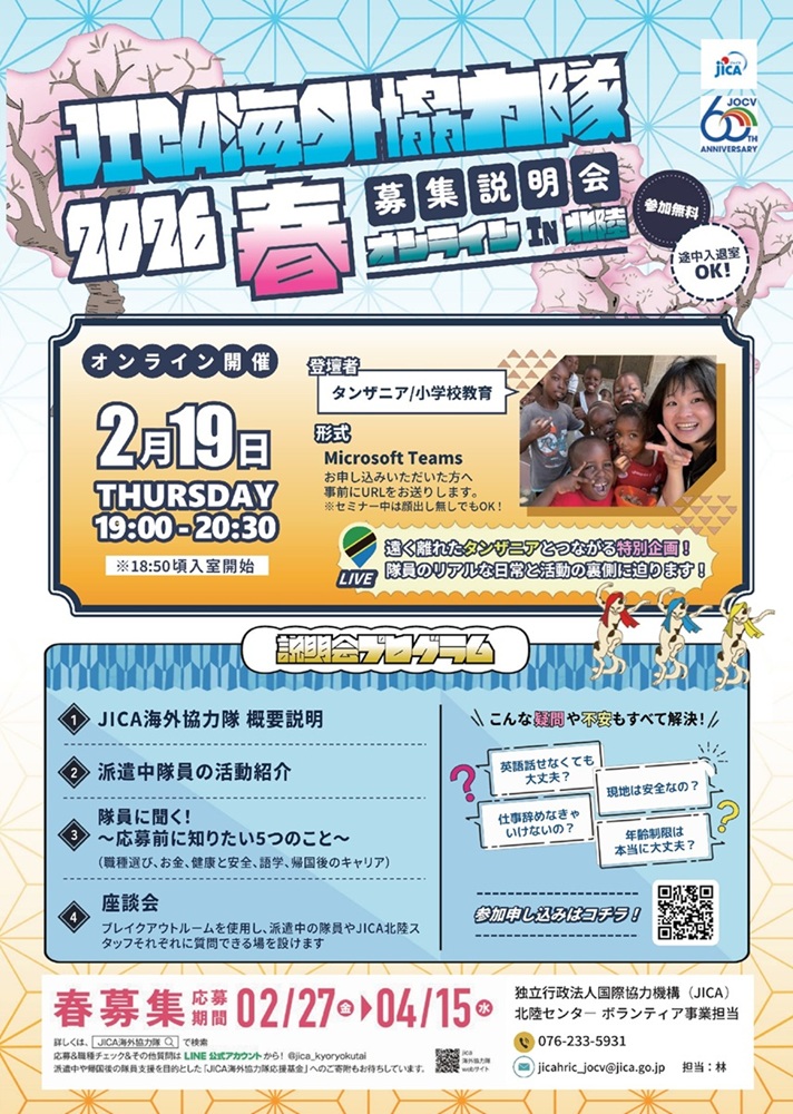 JICA海外協力隊 2026年春募集 オンライン募集説明会 (JICA北陸開催)