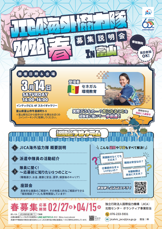 2026年春募集、JICA海外協力隊の募集説明会を「富山会場」で開催します!